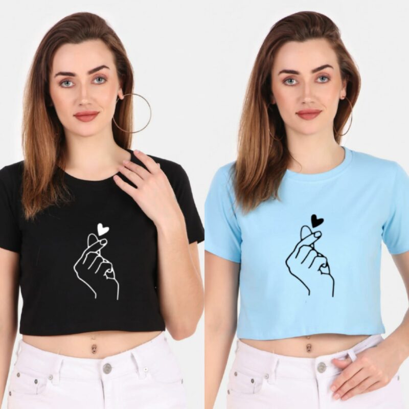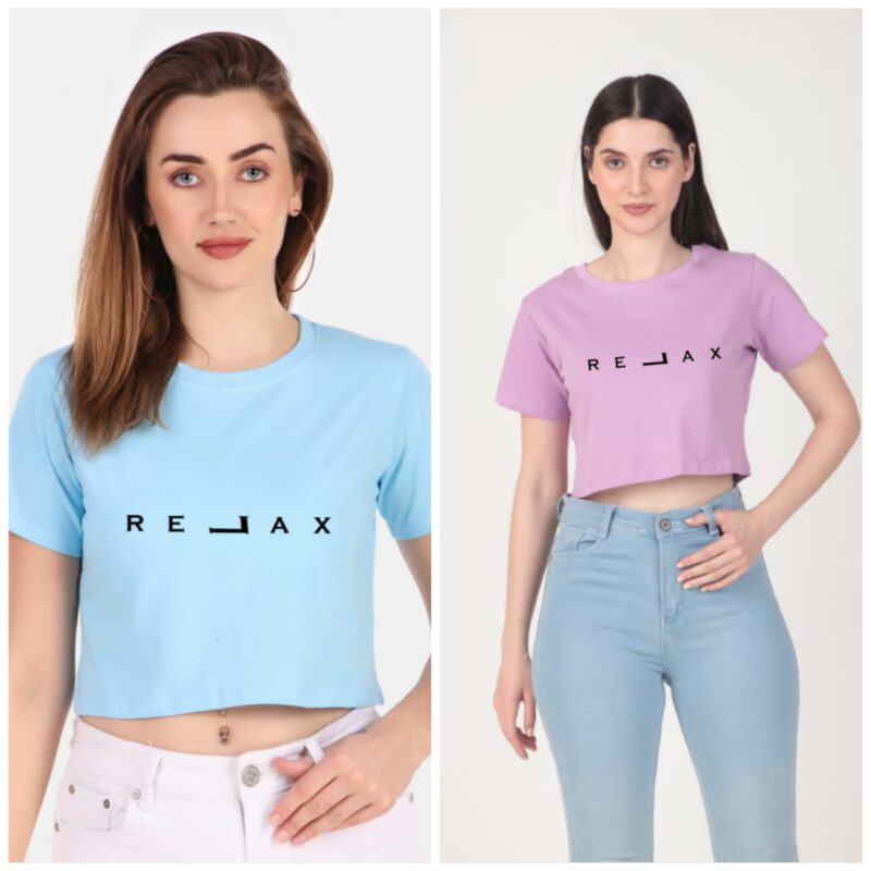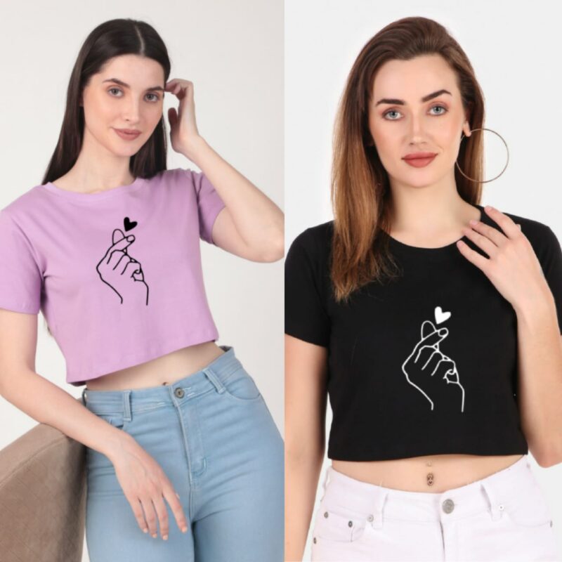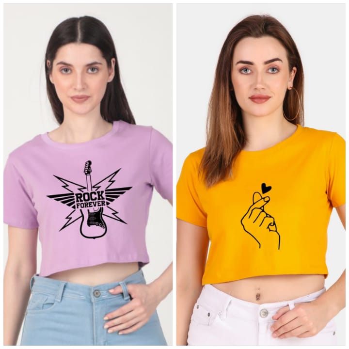 Trendy 190 GSM BIO Washed and Enzyme Washed 100% COTTON COMBO OF TWO PRINTED CROP TOPS from Trendy Rabbit
