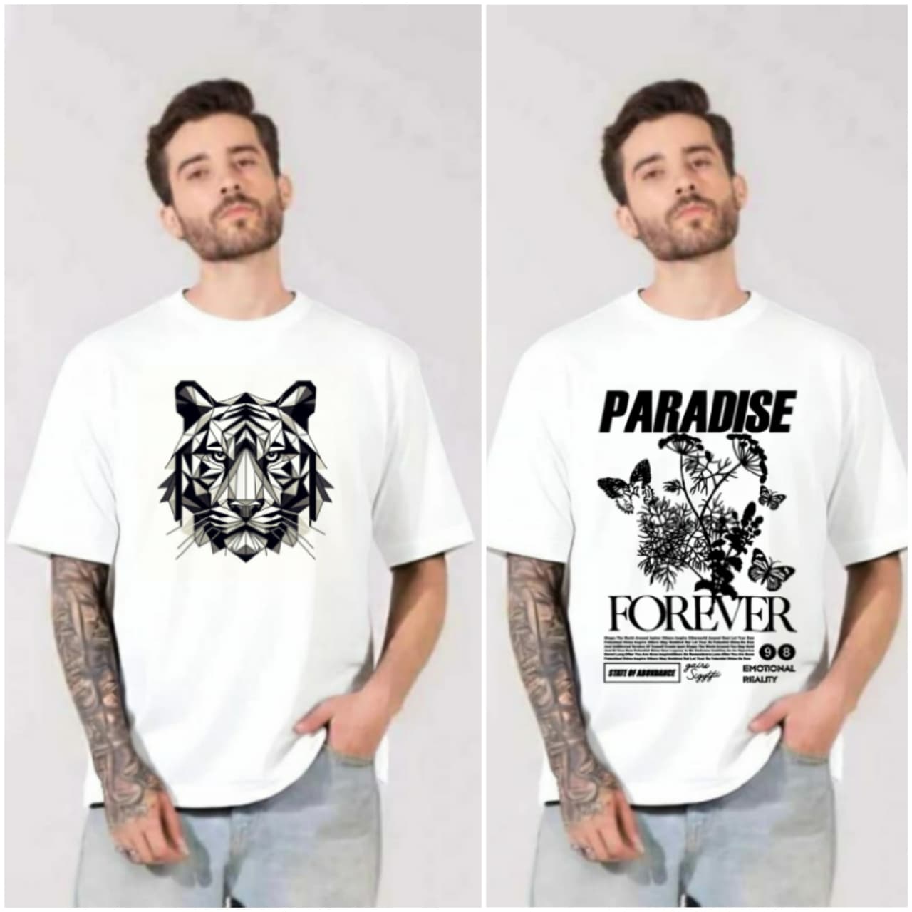 220 GSM Bio Washed and Enzyme washed 100% Cotton Combo Of 2 Printed Mens Oversized ,  best matching with Jeans Trousers in casual wear.
