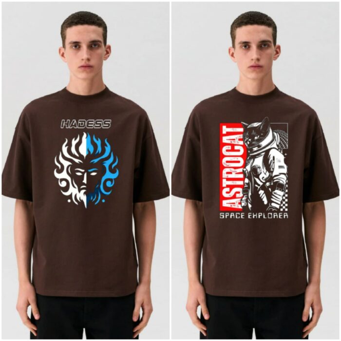 220 GSM Bio Washed and Enzyme washed 100% Cotton Combo Of 2 Printed Mens Oversized , best matching with Jeans Trousers in casual wear.
