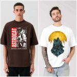 220 GSM Bio Washed and Enzyme Washed 100% Cotton Combo Of 2 Printed Mens Oversized ,  best matching with Jeans Trousers in casual wear.