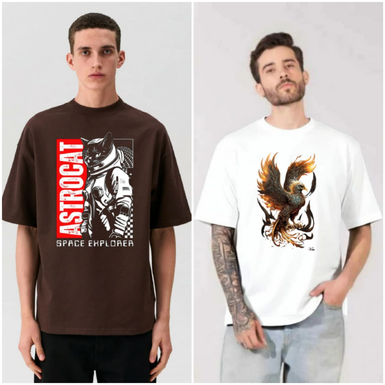 220 GSM Bio Washed and Enzyme Washed 100% Cotton Combo Of 2 Printed Mens Oversized , best matching with Jeans Trousers in casual wear
