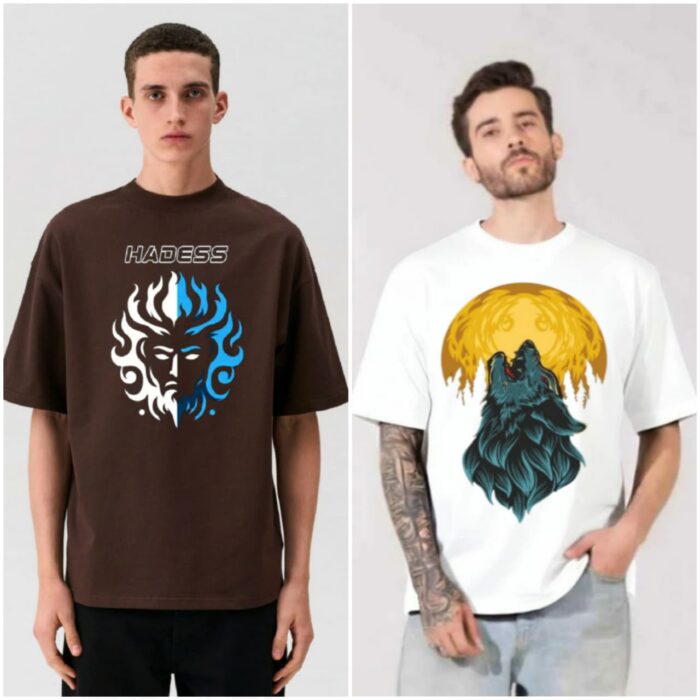 220 GSM Bio Washed and Enzyme washed 100% Cotton Combo Of 2 Printed Mens Oversized , best matching with Jeans Trousers in casual wear