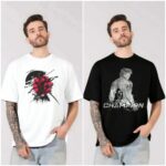 220 GSM Bio Washed and Enzyme Washed 100% Cotton Combo Of 2 Printed Mens Oversized ,  best matching with Jeans Trousers in casual wear.