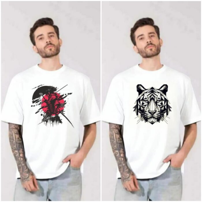 220 GSM Bio Washed and Enzyme Washed 100% Cotton Combo Of 2 Printed Mens Oversized ,  best matching with Jeans Trousers in casual wear.