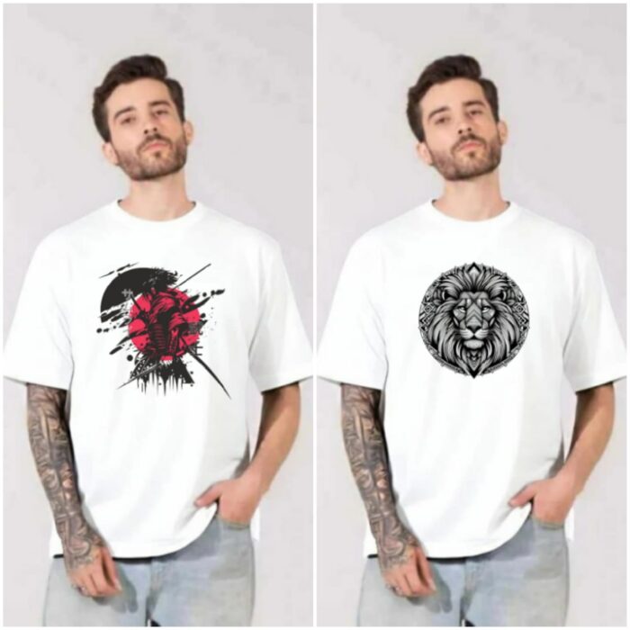 220 GSM Bio Washed and Enzyme Washed 100% Cotton Combo Of 2 Printed Mens Oversized ,  best matching with Jeans Trousers in casual wear.