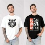 220 GSM Bio Washed and Enzyme Washed 100% Cotton Combo Of 2 Printed Mens Oversized ,  best matching with Jeans Trousers in casual wear.