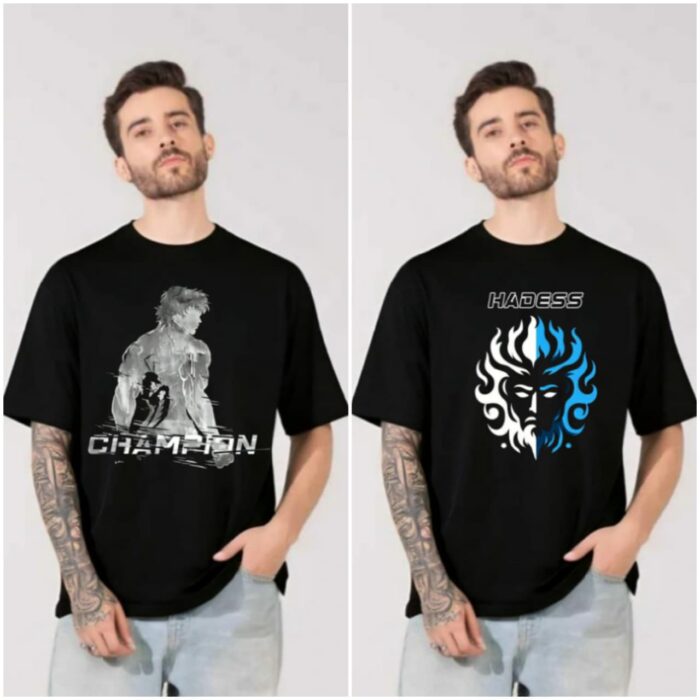 220 GSM Bio Washed and Enzyme Washed 100% Cotton Combo Of 2 Printed Mens Oversized , best matching with Jeans Trousers in casual wear.