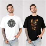 220 GSM Bio Washed and Enzyme Washed 100% Cotton Combo Of 2 Printed Mens Oversized ,  best matching with Jeans Trousers in casual wear.