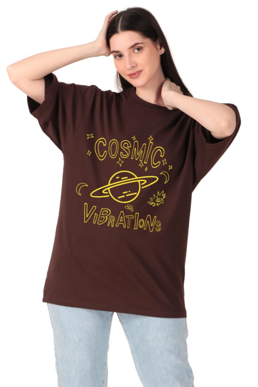 Cotton Ladies Oversized Cosmic Vibration Printed T-shirt