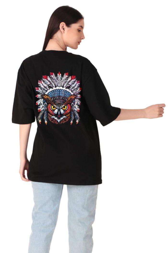 220 GSM Bio Washed and Enzyme washed 100% Cotton Oversized Owl printed Ladies T-shirt, best matching with Jeans Trousers in casual wear.