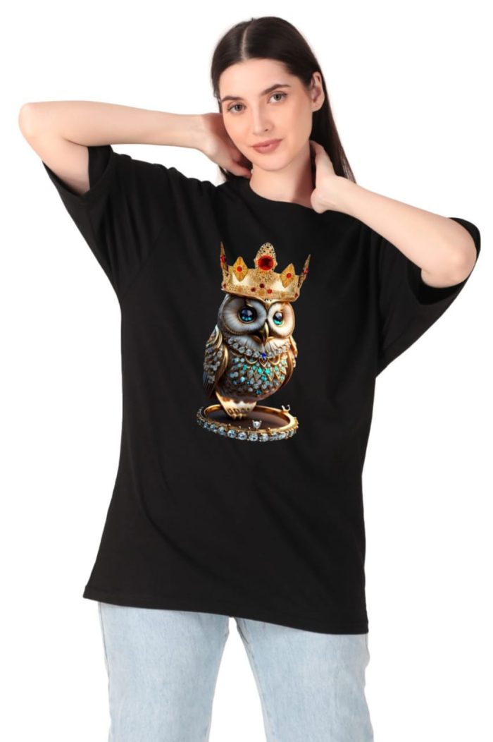 220 GSM Bio Washed and Enzyme washed 100% Cotton Oversized Owl printed Ladies T-shirt, best matching with Jeans Trousers in casual wear.