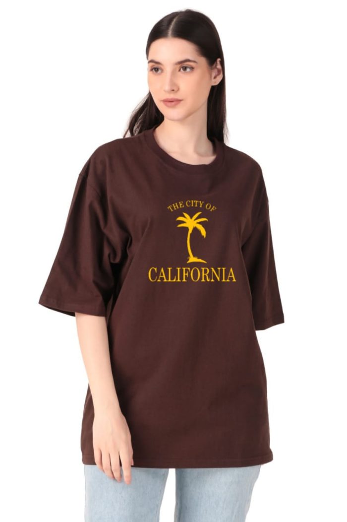 Cotton Ladies Oversized Los Angeles Printed T-shirt