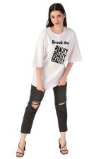 220 GSM Bio Washed and Enzyme washed 100% Cotton Break The Reality printed Ladies T-shirt, , best matching with Jeans Trousers in casual wear.