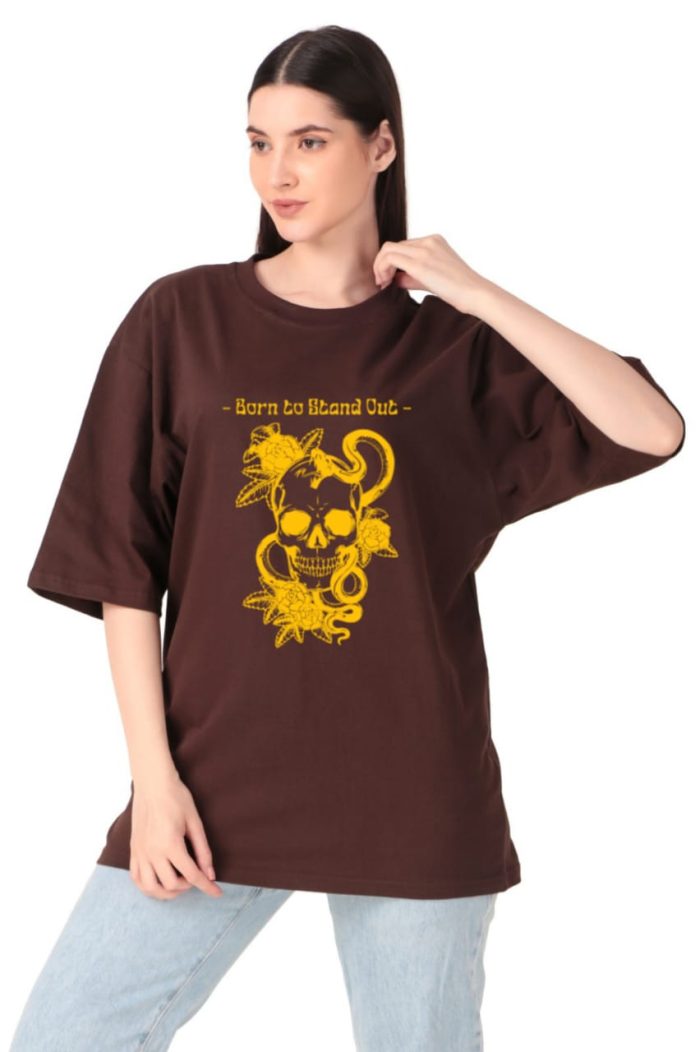 220 GSM Bio Washed and Enzyme washed 100% Cotton Skull- Born To Stand Out printed Ladies t-shirt, , best matching with Jeans Trousers in casual wear.