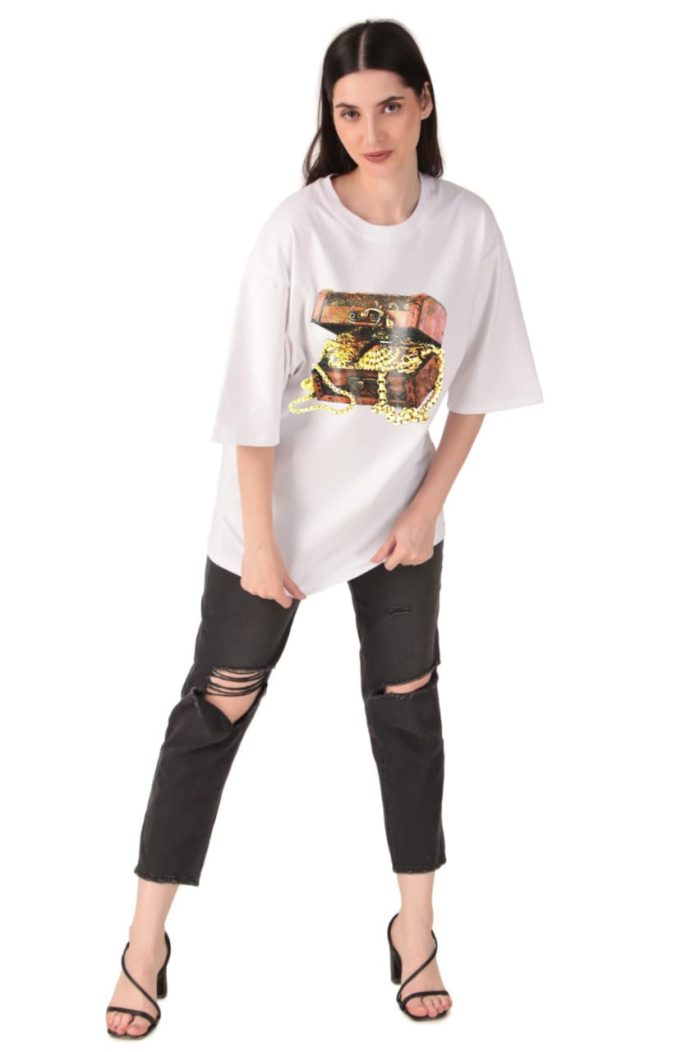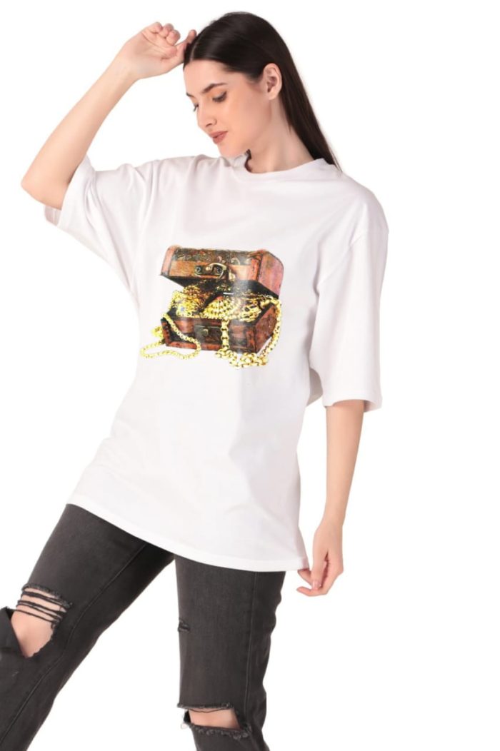 Cotton Ladies Oversized Treasury Printed T-shirt