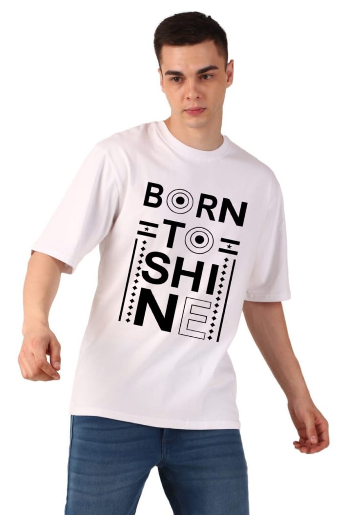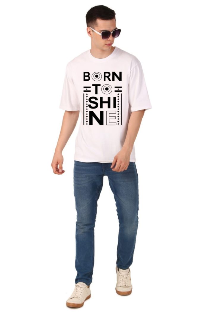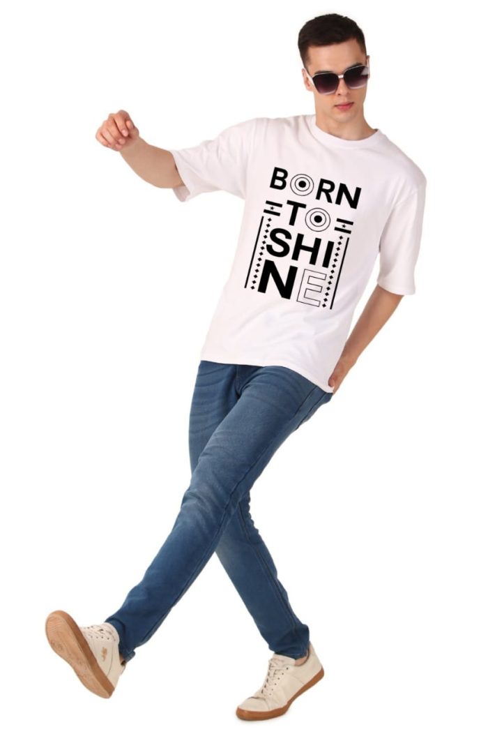 220 GSM Bio Washed and Enzyme washed  100% Cotton Oversized Born To Shine printed men’s T-shirt,  best matching with Jeans Trousers in casual wear.