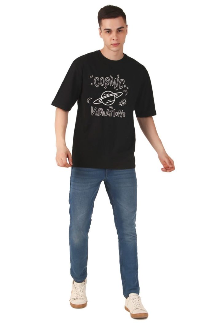220 GSM Bio Washed and Enzyme washed  100% Cotton Oversized Cosmic Vibrations printed men’s T-shirt,  best matching with Jeans Trousers in casual wear.