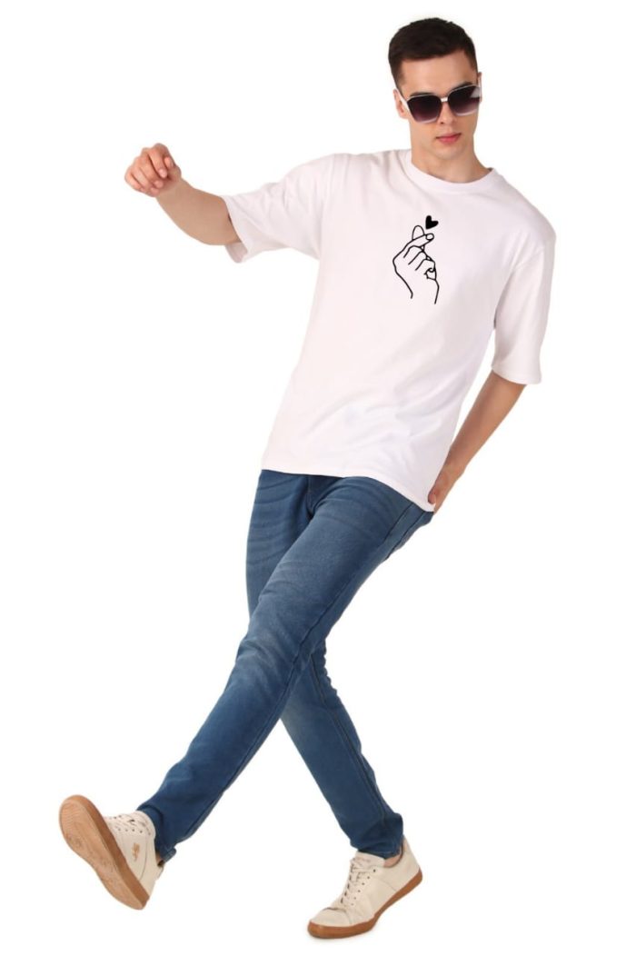 Cotton Men’s Oversized Finger Heart Printed T-shirt