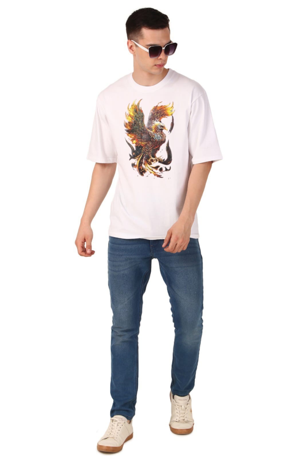 220 GSM Bio Washed and Enzyme washed 100% Cotton Oversized Golden Eagle printed men’s T-shirt, best matching with Jeans Trousers in casual wear.