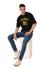 220 GSM Bio Washed and Enzyme washed 100% Cotton Oversized Los Angeles 91 printed men’s T-shirt, best matching with Jeans Trousers in casual wear.