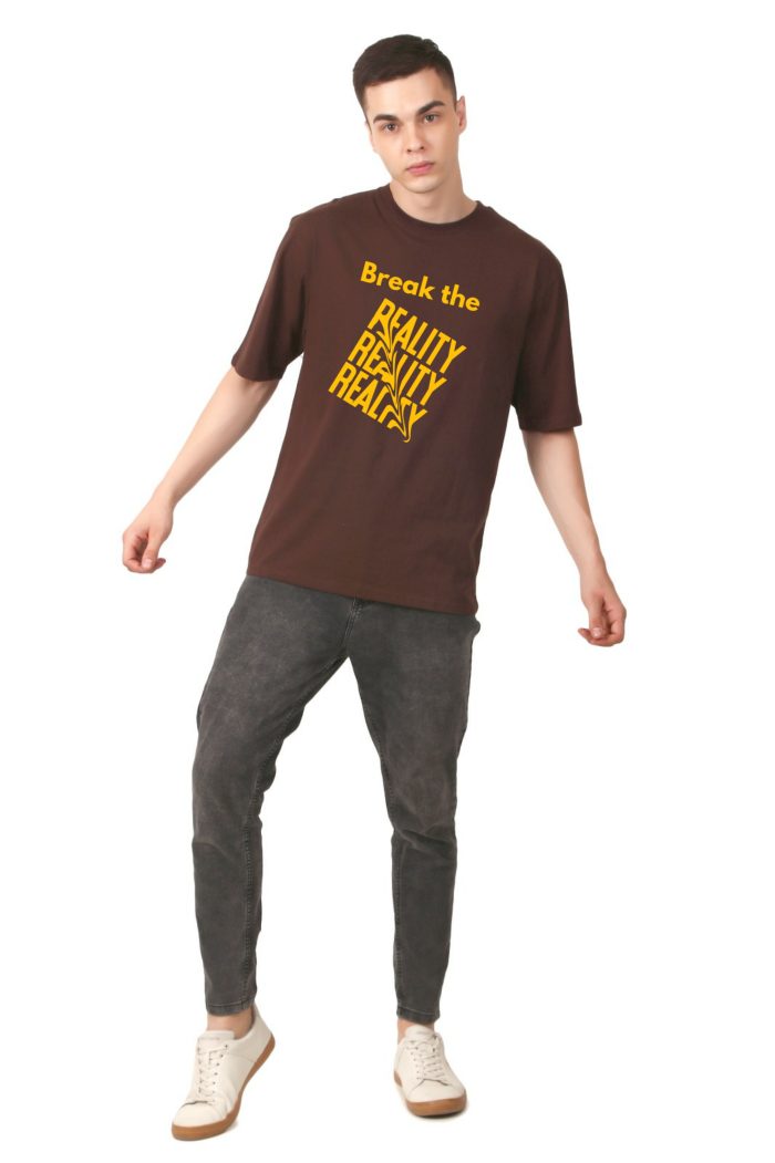 220 GSM Bio Washed and Enzyme washed 100% Cotton Oversized Break The Reality printed men’s T-shirt, best matching with Jeans Trousers in casual wear.