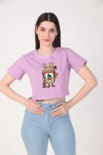 190 GSM Bio Washed and Enzyme washed 100% Cotton Printed Crop Top, best matching with Jeans Trousers in casual wear.