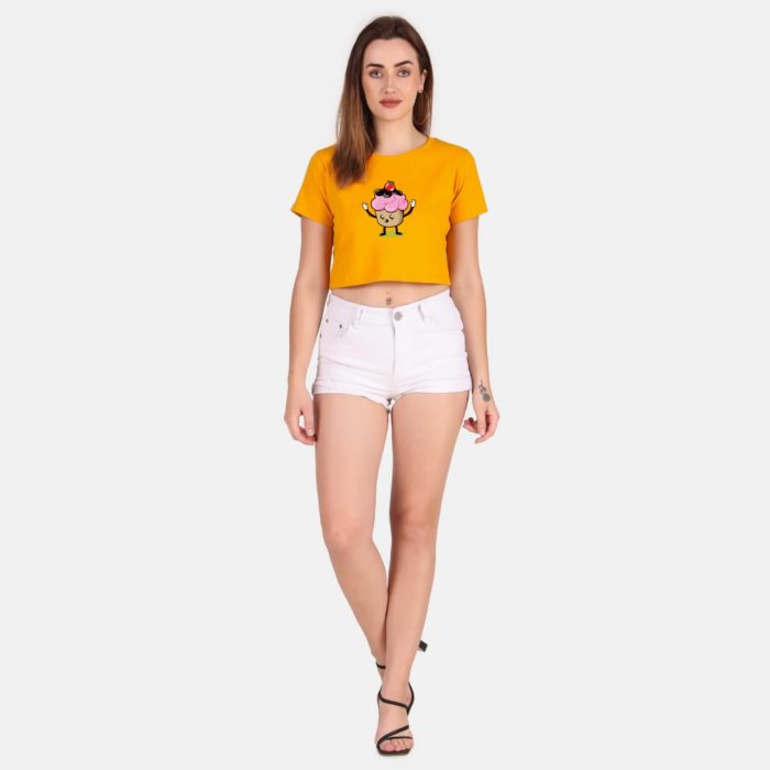 190 GSM Bio Washed and Enzyme washed  100% Cotton Printed Crop Top, best matching with Jeans Trousers in casual wear.
