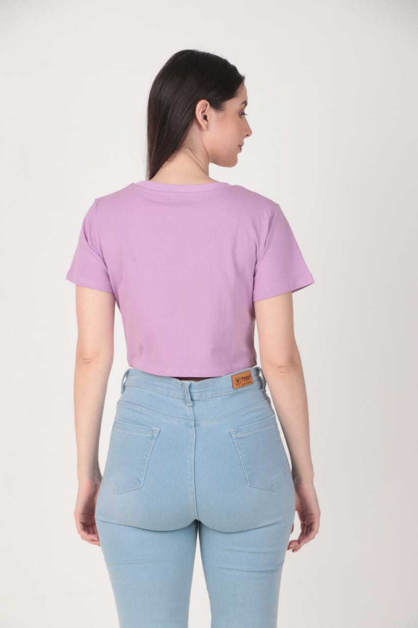 190 GSM Bio Washed and Enzyme washed 100% Cotton Printed Crop Top, best matching with Jeans Trousers in casual wear.