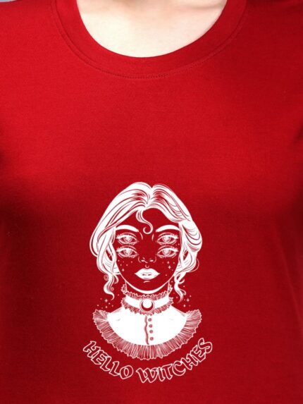 190 GSM Bio Washed and Enzyme washed  100% Cotton Witch printed Ladies T-shirt,  best matching with Jeans Trousers in casual
