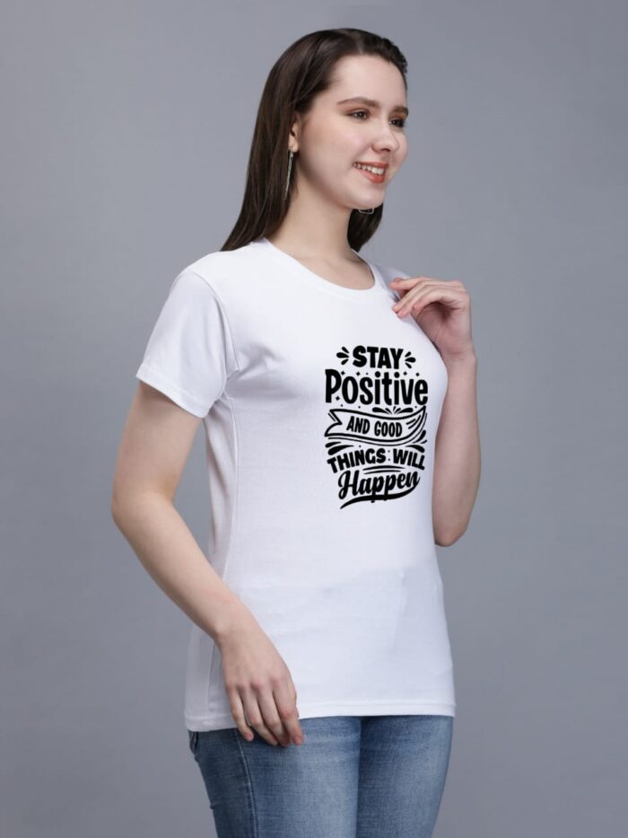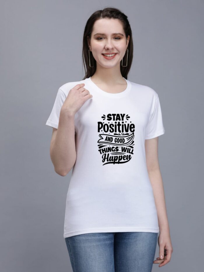 Home Ladies Regular T-Shirts Cotton Ladies Regular Stay Positive Printed T-shirt