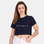 190 GSM Bio Washed and Enzyme washed 100% Cotton Relax printed Crop Top, best matching with Jeans Trousers in casual wear.