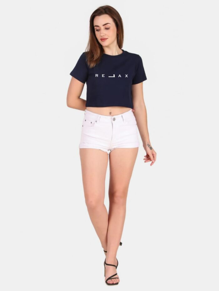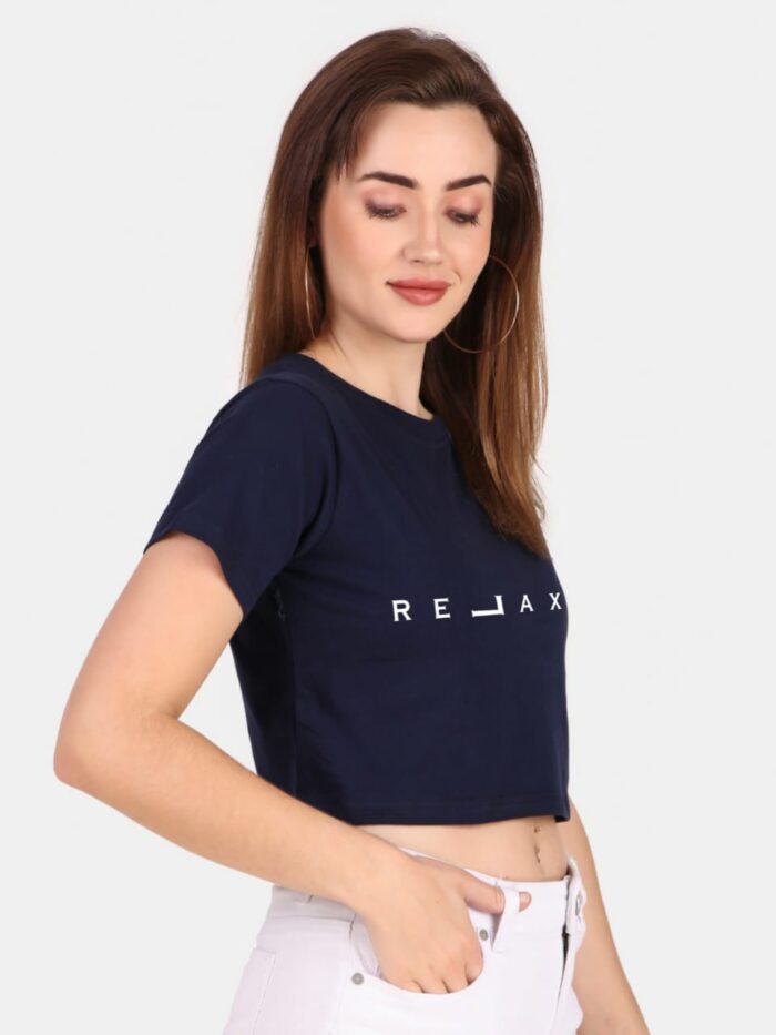 190 GSM Bio Washed and Enzyme washed 100% Cotton Relax printed Crop Top, best matching with Jeans Trousers in casual wear.