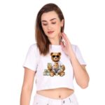 190 GSM Bio Washed and Enzyme washed 100% Cotton Bear Printed Crop Top, best matching with Jeans Trousers in casual wear