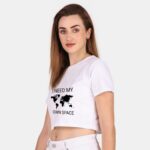 190 GSM Bio Washed and Enzyme washed 100% Cotton Own Space Printed Crop Top, best matching with Jeans Trousers in casual wear