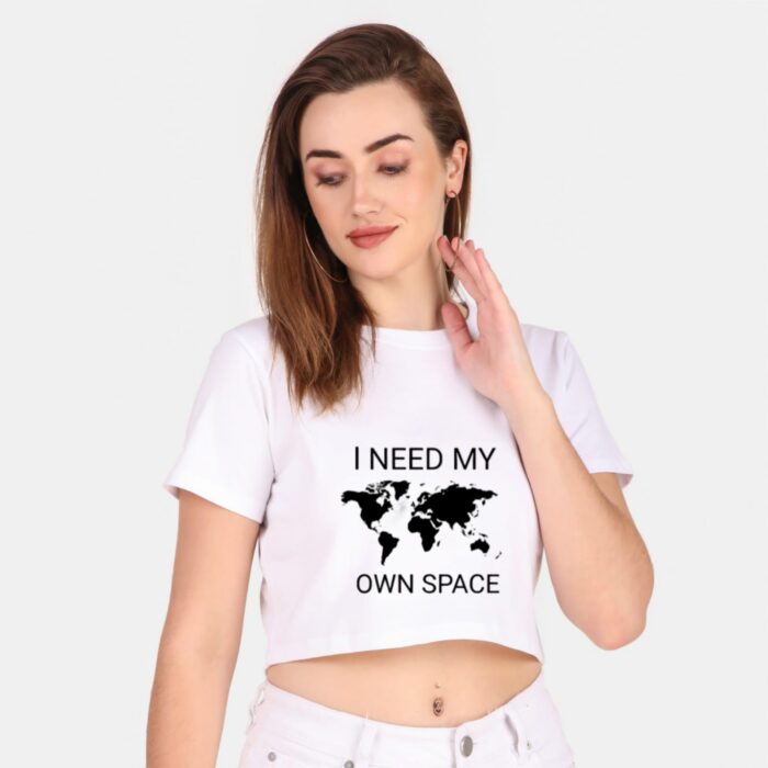 190 GSM Bio Washed and Enzyme washed 100% Cotton Own Space Printed Crop Top, best matching with Jeans Trousers in casual wear