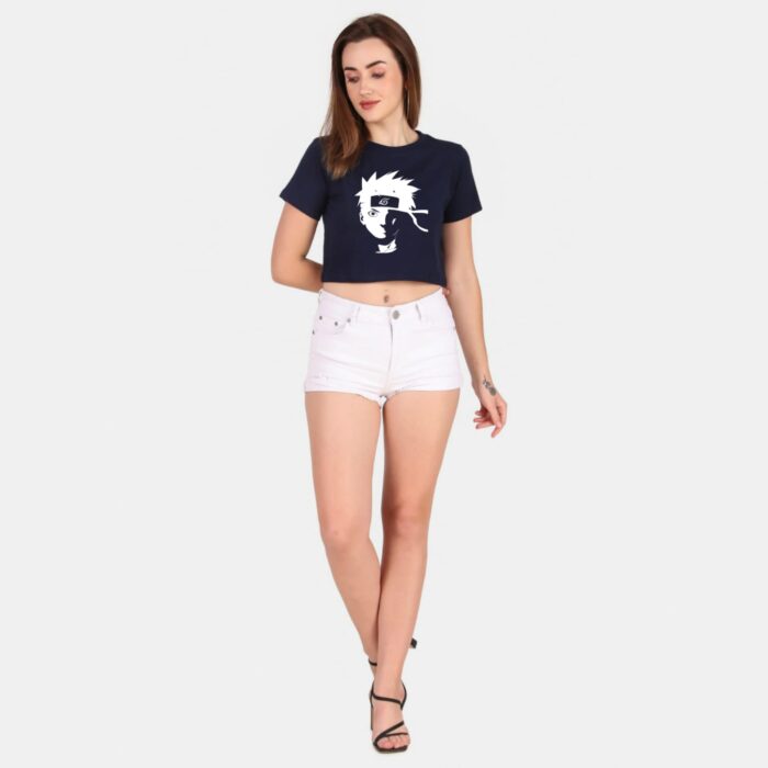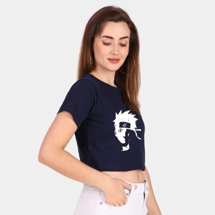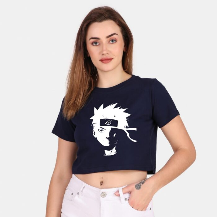 190 GSM Bio Washed and Enzyme washed 100% Cotton Naruto 1 printed Crop Top, best matching with Jeans Trousers in casual wear.