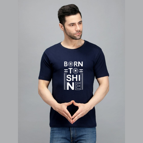 190 GSM Bio Washed and Enzyme washed 100% Cotton Born To Shine printed men’s t-shirt, best matching with Jeans Trousers in casual wear.