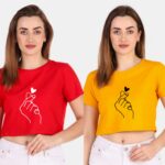 Trendy 190 GSM BIO Washed and Enzyme Washed 100% COTTON COMBO OF TWO PRINTED CROP TOPS from Trendy Rabbit
