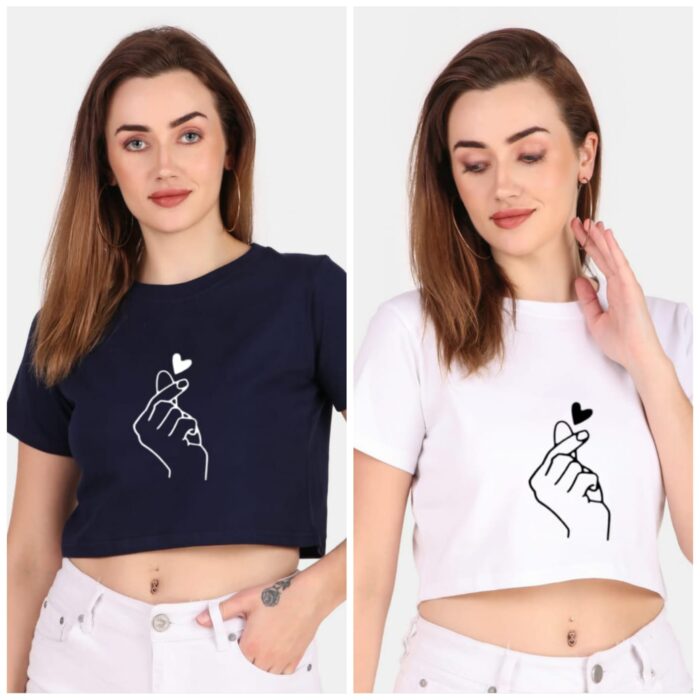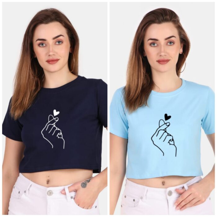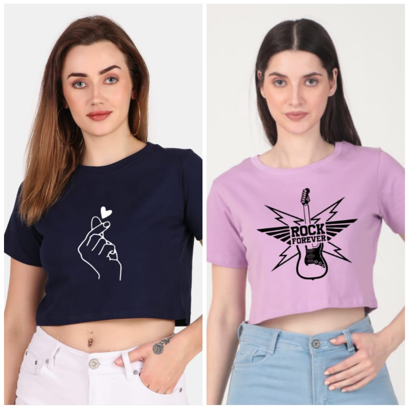 Trendy 190 GSM BIO Washed and Enzyme Washed 100% COTTON COMBO OF TWO PRINTED CROP TOPS from Trendy Rabbit