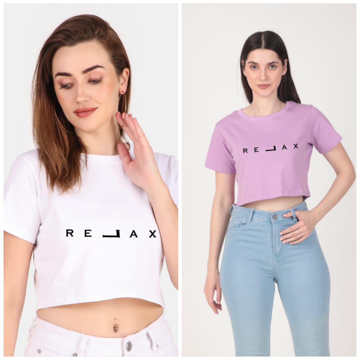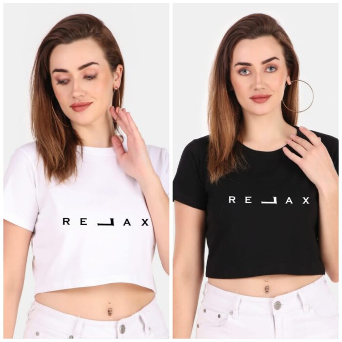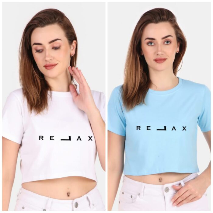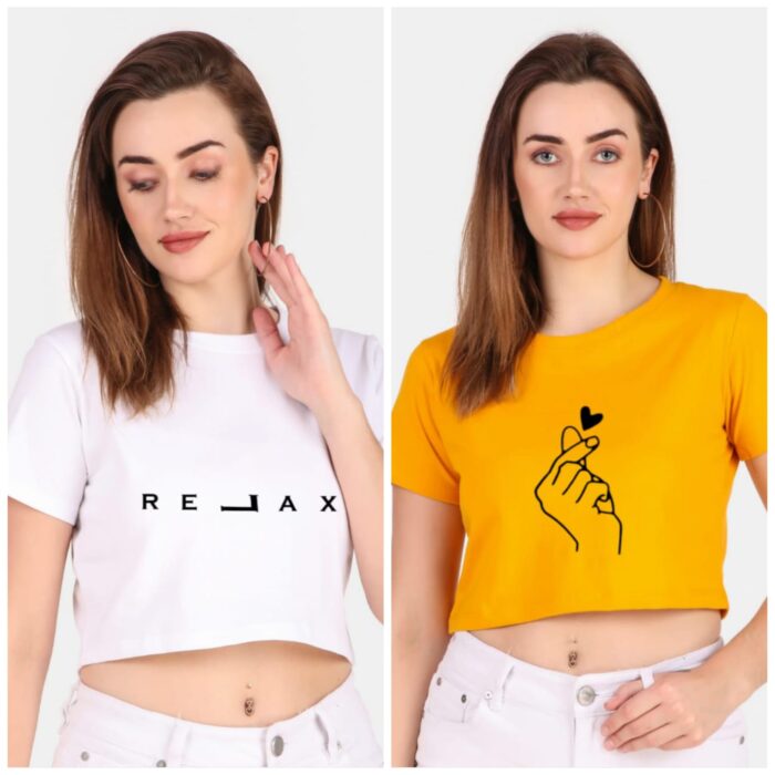 Trendy 190 GSM BIO Washed and Enzyme Washed 100% COTTON COMBO OF TWO PRINTED CROP TOPS from Trendy Rabbit