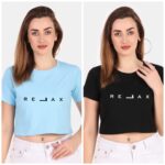 Trendy 190 GSM BIO Washed and Enzyme Washed 100% COTTON COMBO OF TWO PRINTED CROP TOPS from Trendy Rabbit