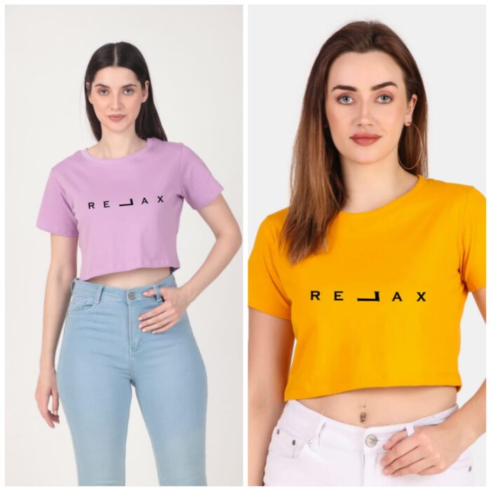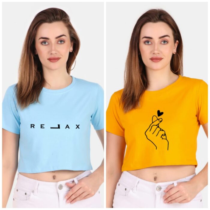 Trendy 190 GSM BIO Washed and Enzyme Washed 100% COTTON COMBO OF TWO PRINTED CROP TOPS from Trendy Rabbit