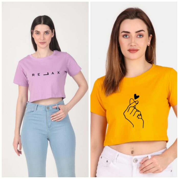 190 GSM Bio Washed and Enzyme washed 100% Cotton Printed Combo Of 2 Crop Tops, best matching with Jeans Trousers in casual wear