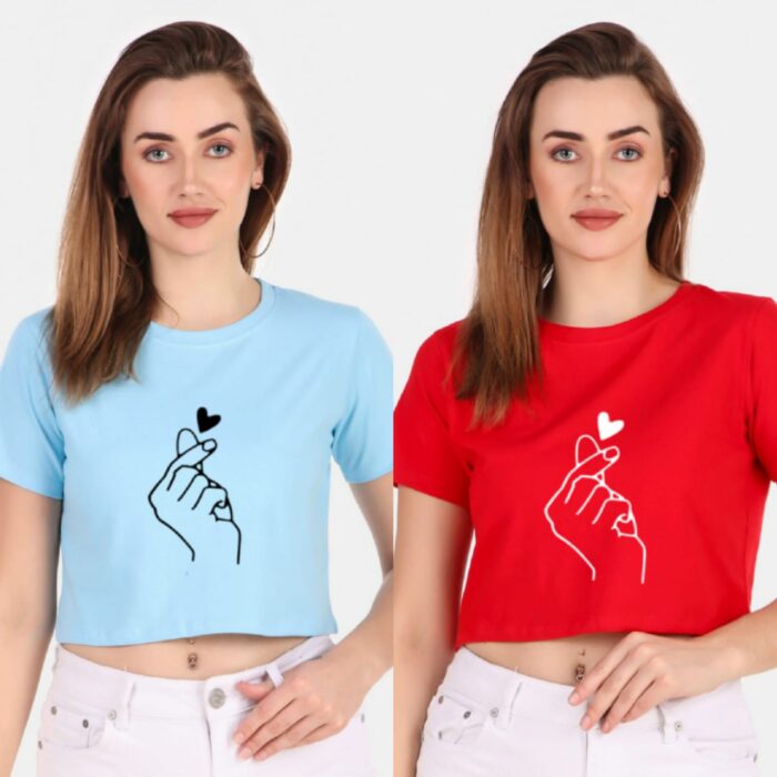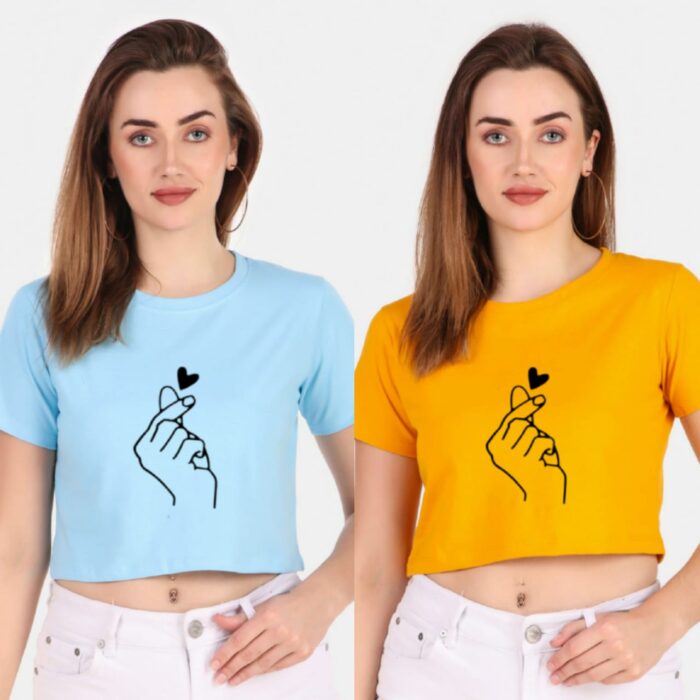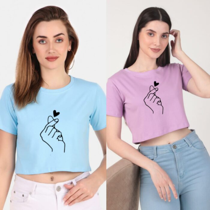 Trendy 190 GSM BIO Washed and Enzyme Washed 100% COTTON COMBO OF TWO PRINTED CROP TOPS from Trendy Rabbit