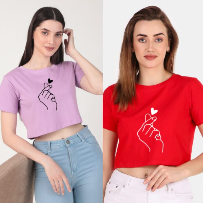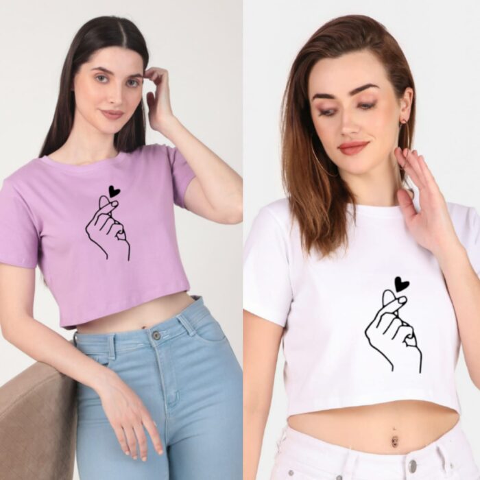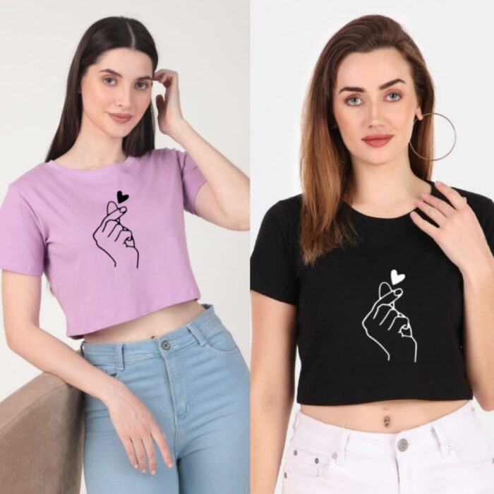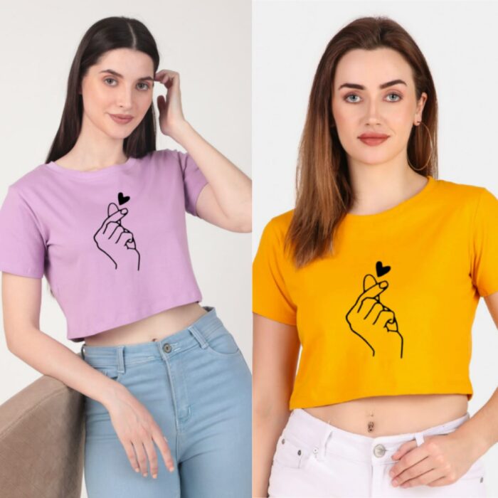 Trendy 190 GSM BIO Washed and Enzyme Washed 100% COTTON COMBO OF TWO PRINTED CROP TOPS from Trendy Rabbit