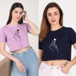 Trendy 190 GSM BIO Washed and Enzyme Washed 100% COTTON COMBO OF TWO PRINTED CROP TOPS from Trendy Rabbit