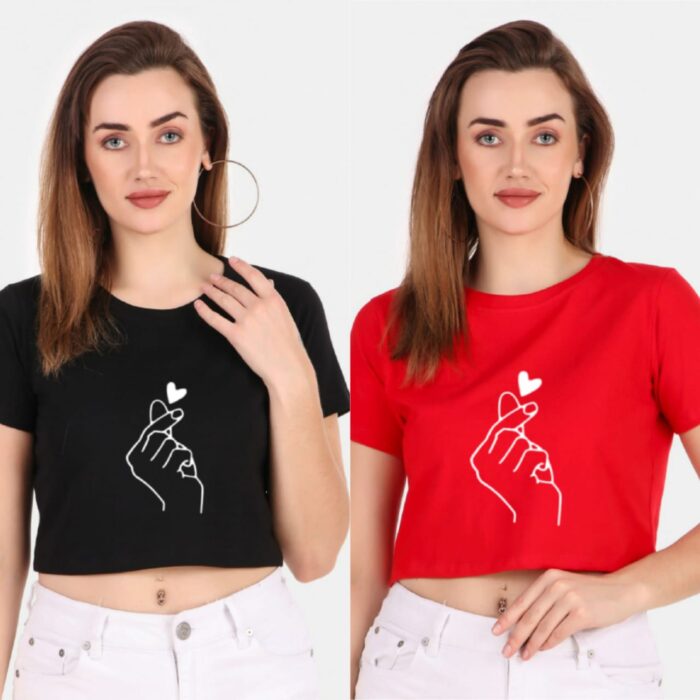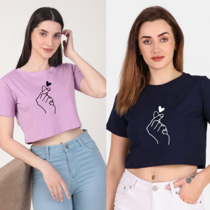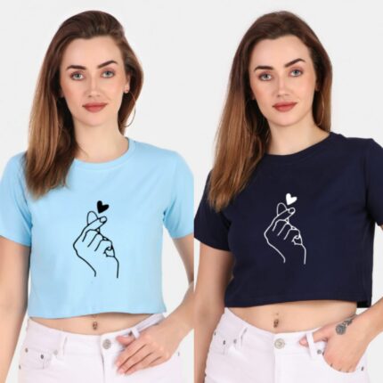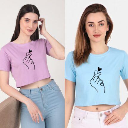 Trendy 190 GSM BIO Washed and Enzyme Washed 100% COTTON COMBO OF TWO PRINTED CROP TOPS from Trendy Rabbit