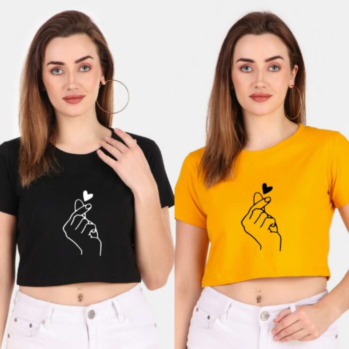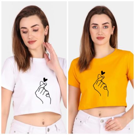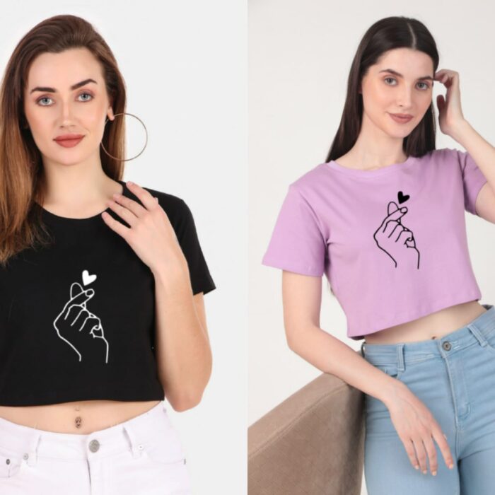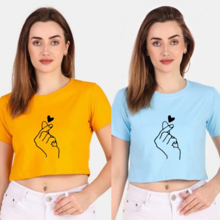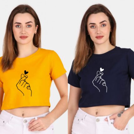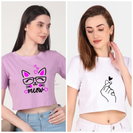 Trendy 190 GSM BIO Washed and Enzyme Washed 100% COTTON COMBO OF TWO PRINTED CROP TOPS from Trendy Rabbit
