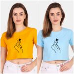 Trendy 190 GSM BIO Washed and Enzyme Washed 100% COTTON COMBO OF TWO PRINTED CROP TOPS from Trendy Rabbit