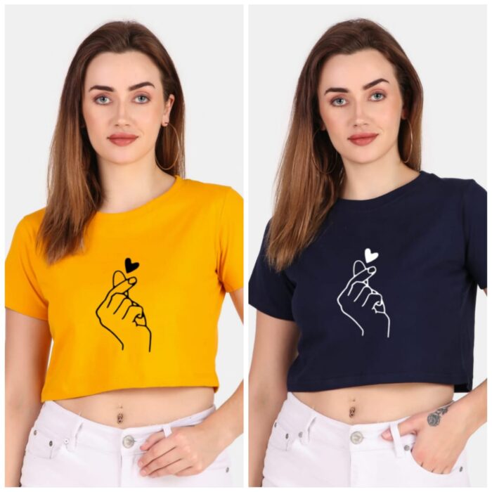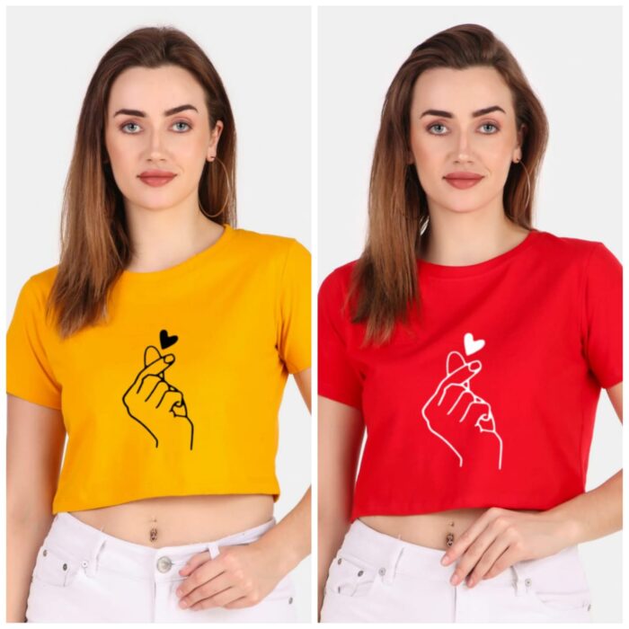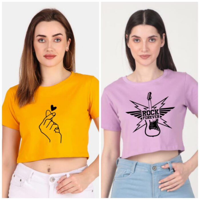 Trendy 190 GSM BIO Washed and Enzyme Washed 100% COTTON COMBO OF TWO PRINTED CROP TOPS from Trendy Rabbit